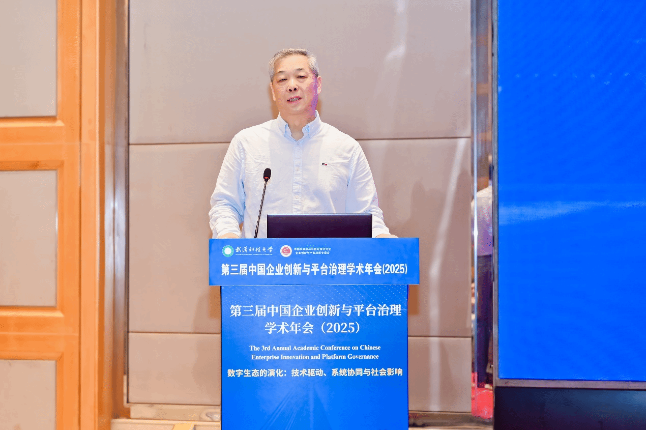 武科大网讯 5月17-18日,由中国科学学与科技政策研究会企业创新与产业政策专委会主办的第三届中国企业创新与平台治理学术年会(2025)在湖北武汉举办,来自全国各地的三百余位学者、研究生及行业专家参会。我校副校长陈志刚出席并致辞。会议开幕式由我校管理学院执行院长刘海兵主持。