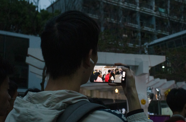 观众认真欣赏演出并拍照留念 杨佳伟摄