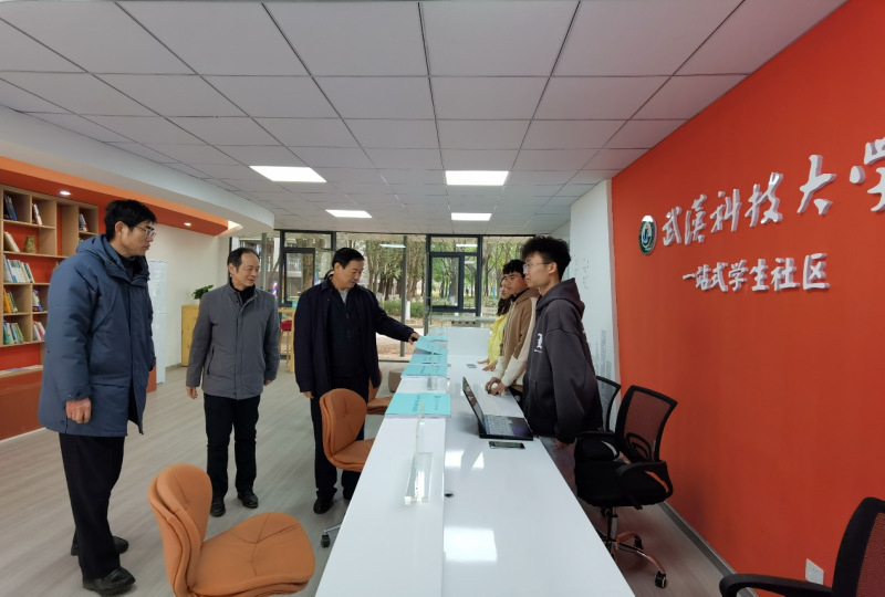 武科大网讯 2月24日下午,党委书记徐雁冰调研学校“一站式”学生社区建设工作,先后实地走访了黄家湖校区南、北苑“一站式”学生社区,并与学工部负责人、入驻社区辅导员以及学生发展支持中心学生干部交流。