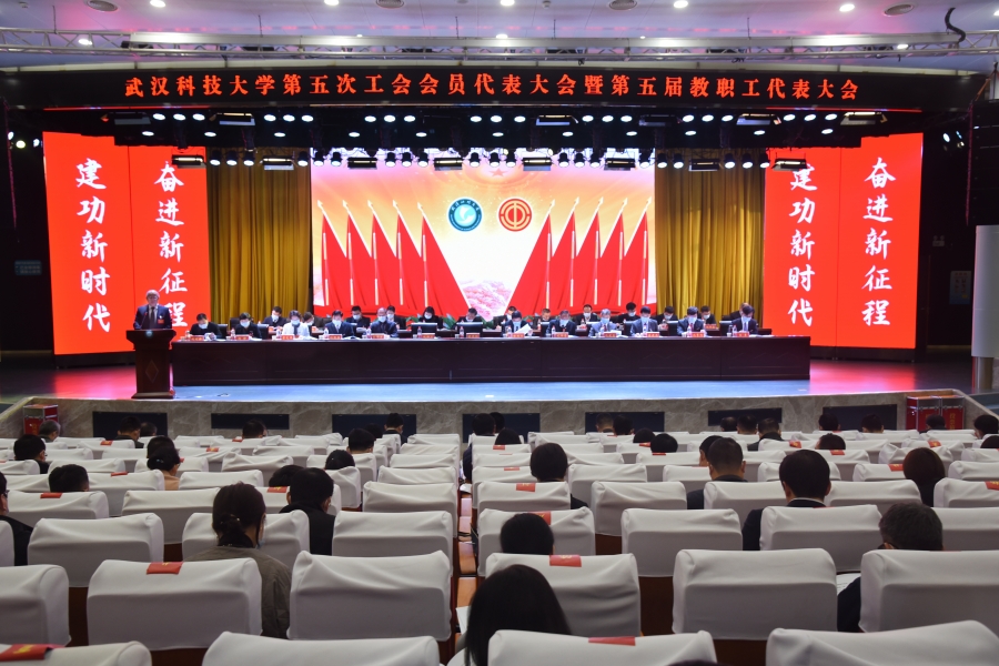 武科大网讯(记者陈孖川 摄影方斌)11月18日上午,学校第五次工会会员代表大会暨第五届教职工代表大会在青山校区碧园会堂召开。