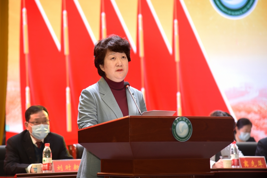 校团委书记刘晓云代表群团组织致贺词,代表校团委向大会的召开表示热烈的祝贺,向全校工会会员、教职工表示崇高的敬意,预祝大会圆满成功。