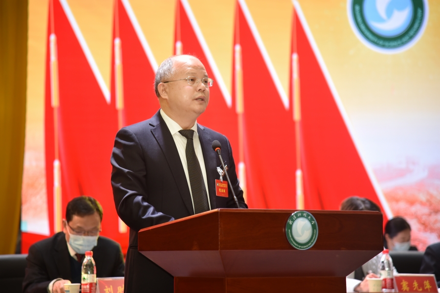 校党委副书记、工会主席、教代会主任盛建龙代表工会、教代会向大会作题为《贯彻新理念建功新时代 为推动学校“十四五”高质量发展贡献力量》的工作报告。