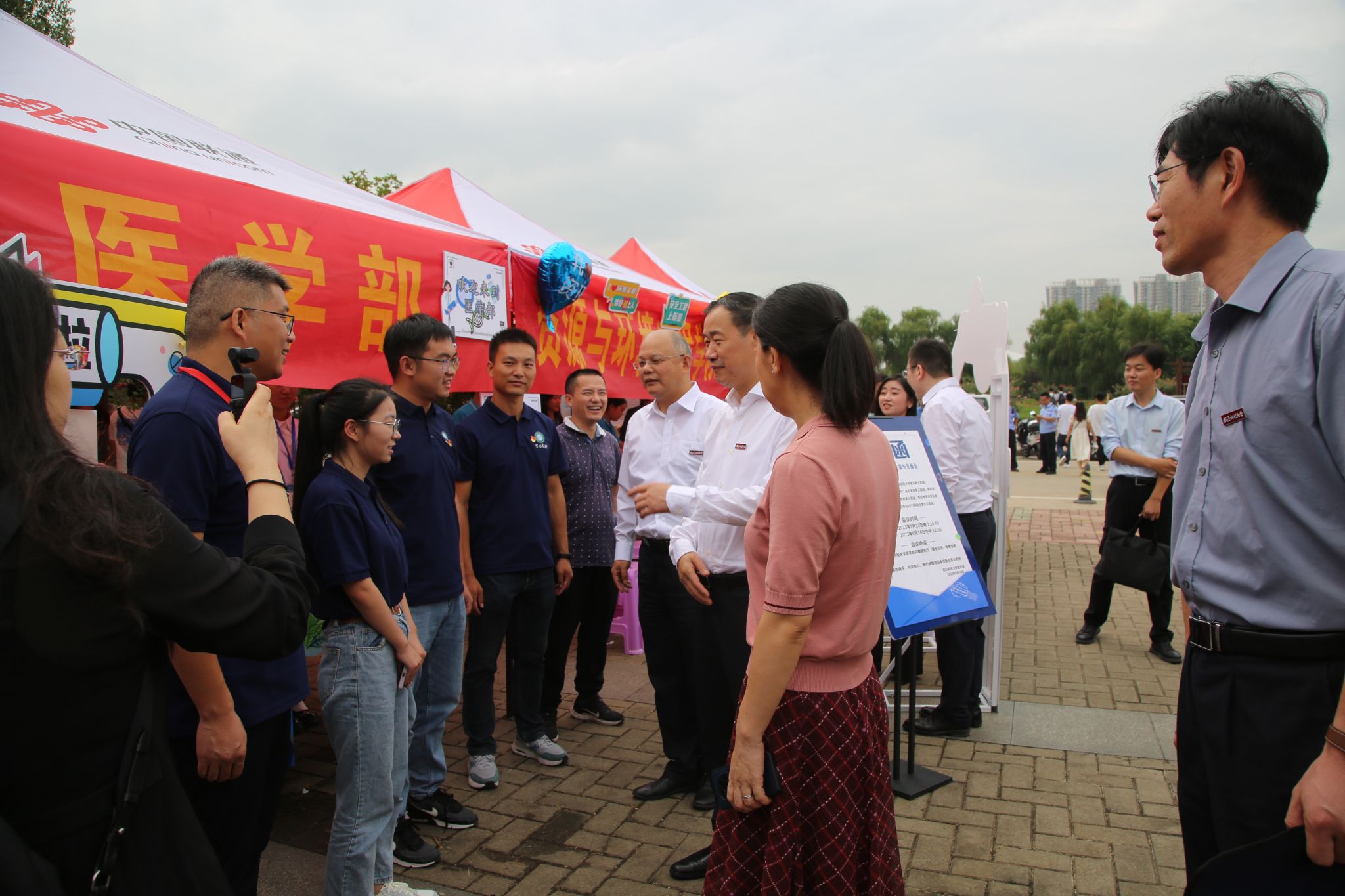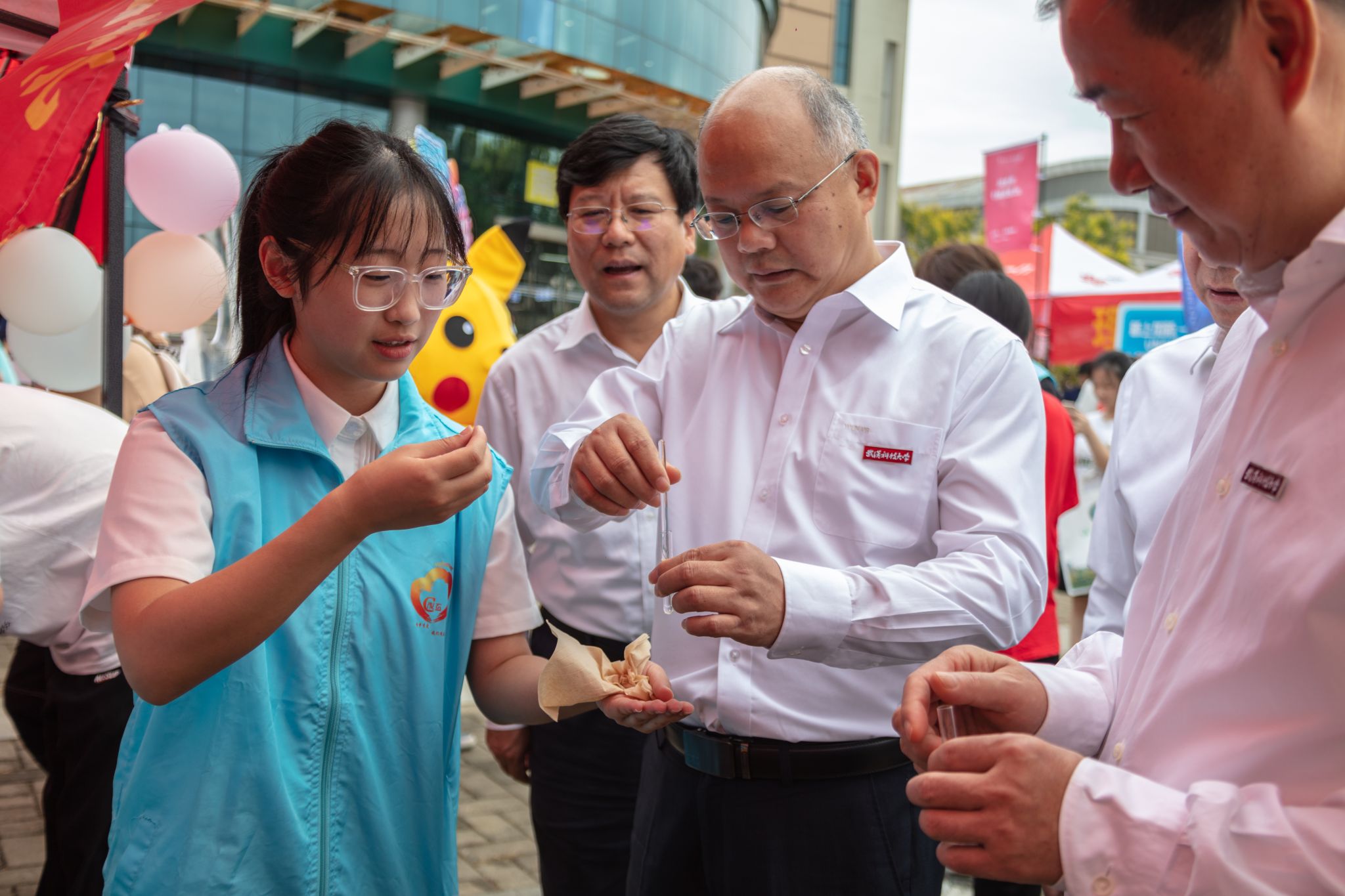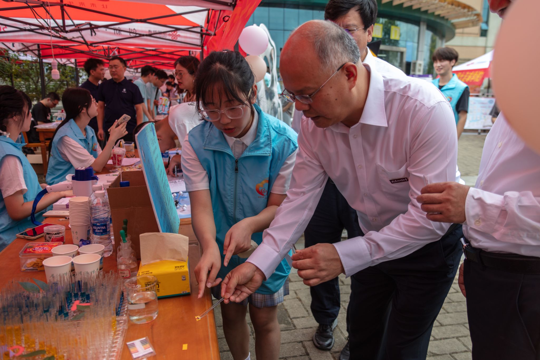 书记校长在志愿者的带领下体验化工学院125化学实验 杨佳伟摄