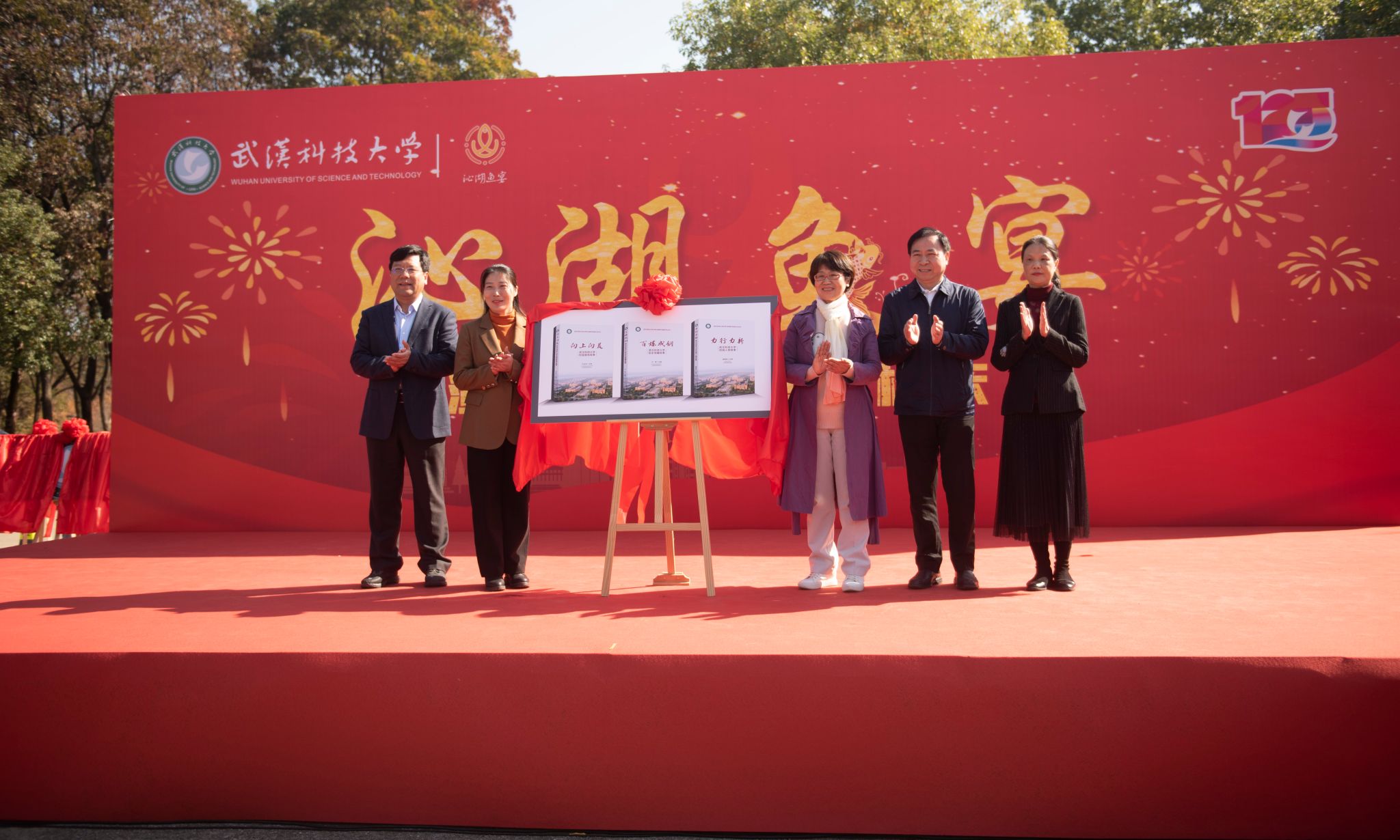 党委副书记孙国胜、副校长沈季伟公布沁湖文化标识 杨佳伟摄