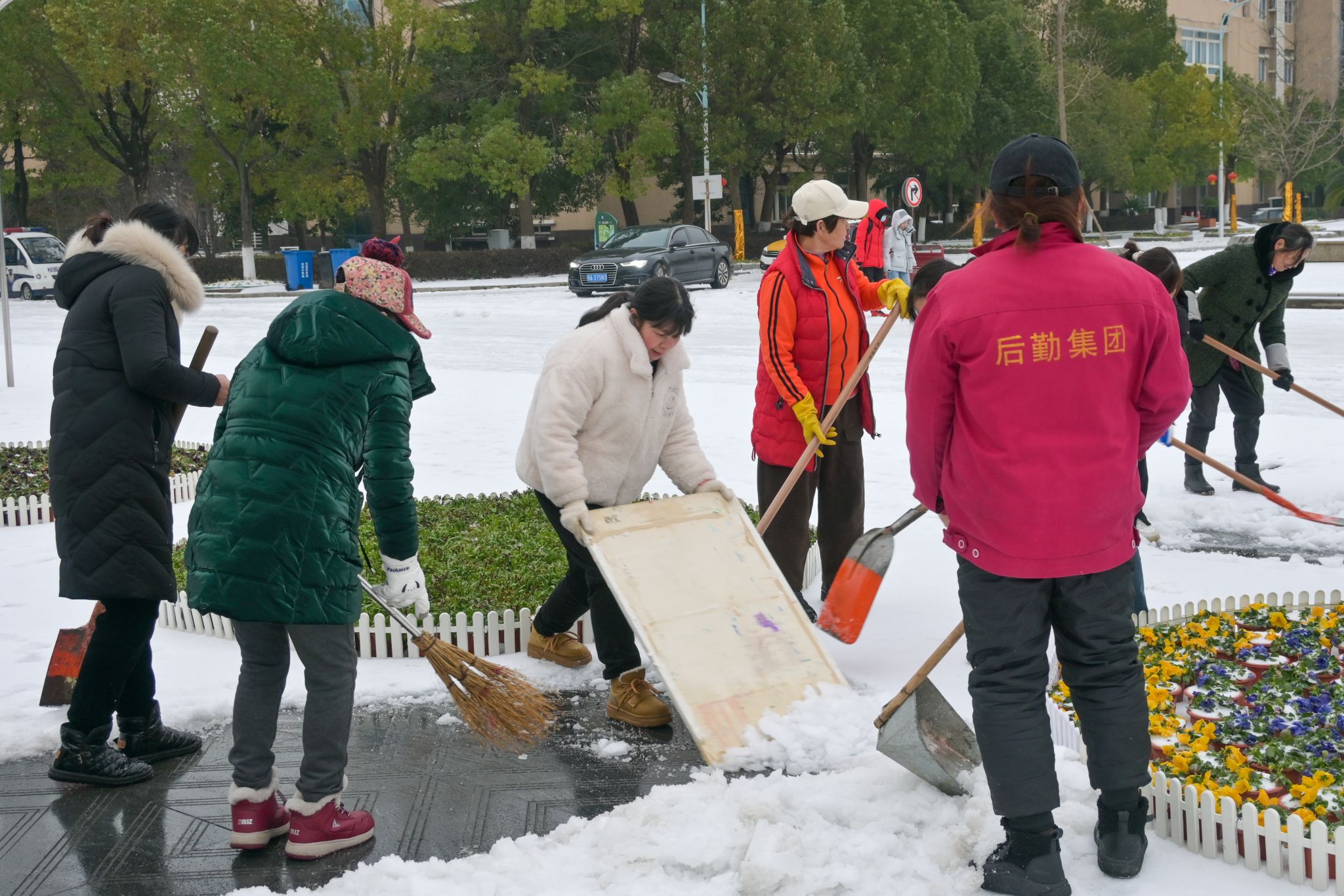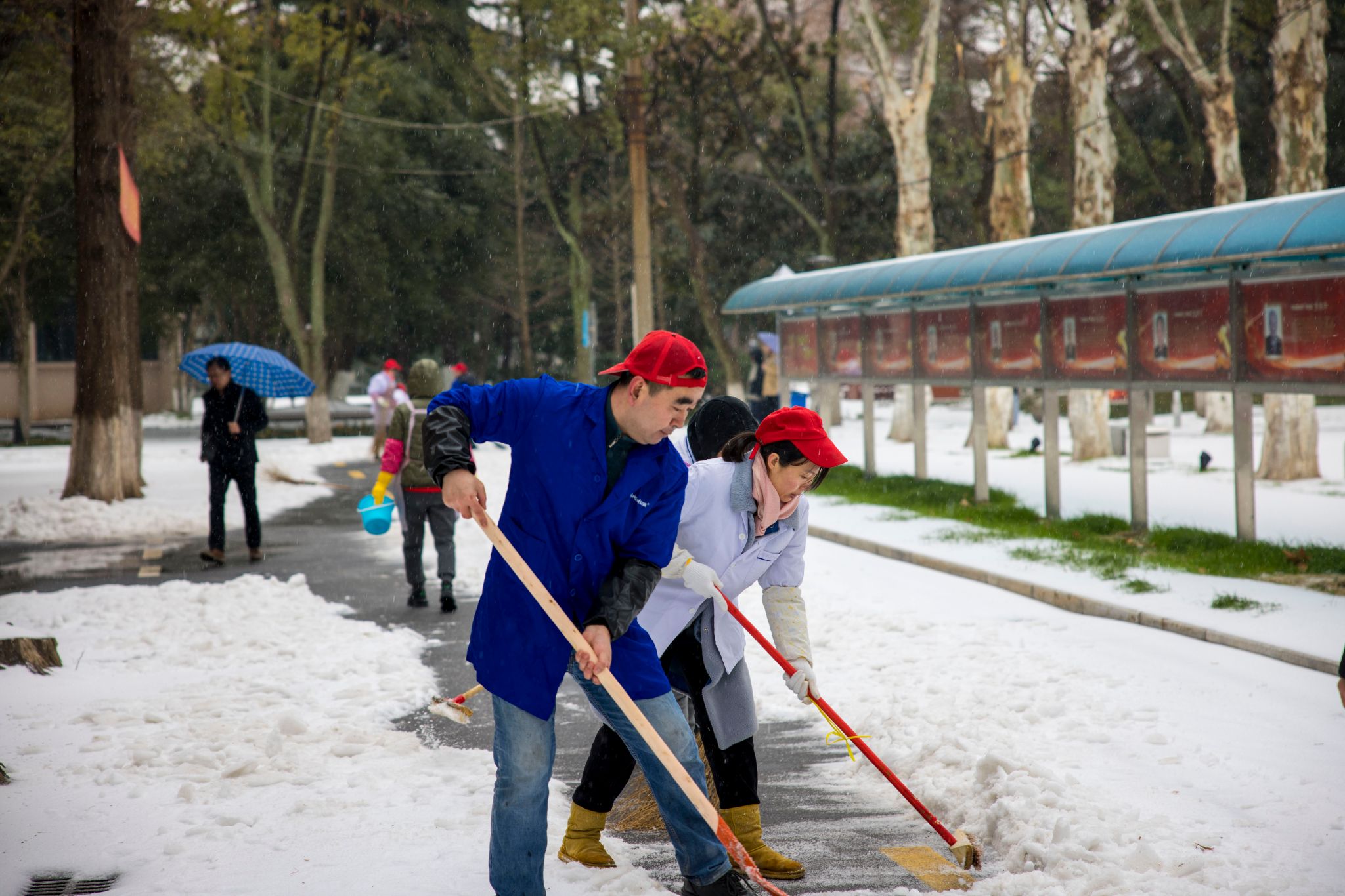 2月22日,在一夜之间,武科大银装素裹,一片白茫茫的景象。空气是寒冷的,但是武科大人的心却是热辣滚烫的。武科大的后勤人员为武科大的师生们营造安全的空间,不辞辛劳,一大早就在宿舍楼下、食堂门口以及要道门口撒盐除雪、布置防滑垫。同学们三五成群,纷纷出来看雪拍照。老师们一起去除封条,清洁玻璃。(曹易航)