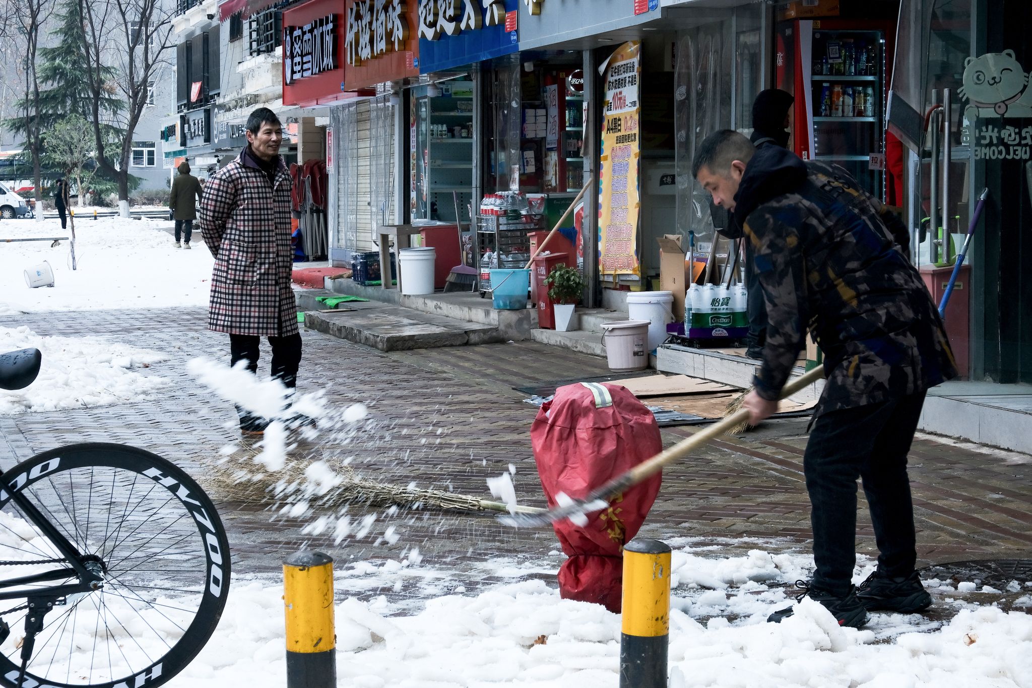 在食堂门口撒盐化雪的大叔 曹易航摄