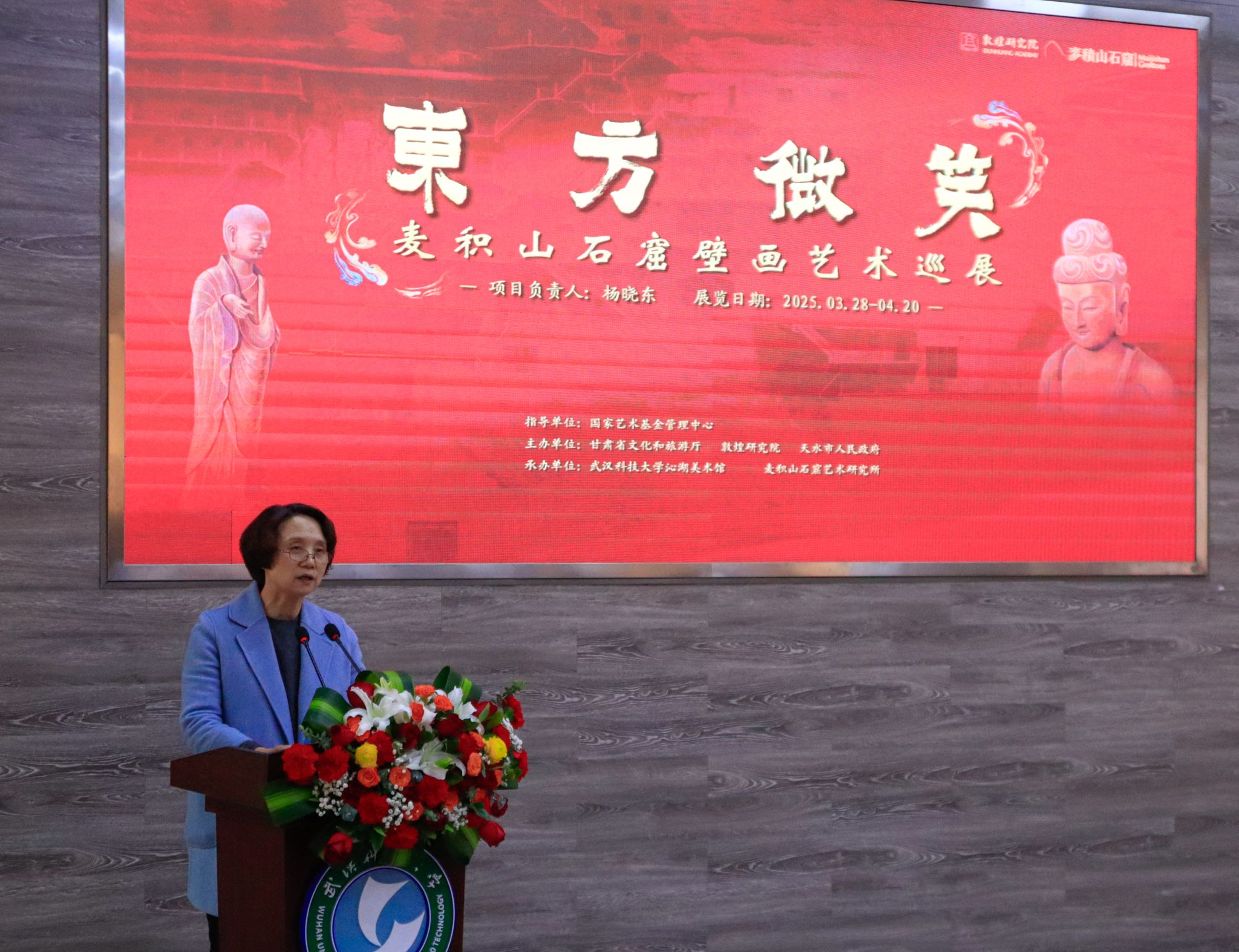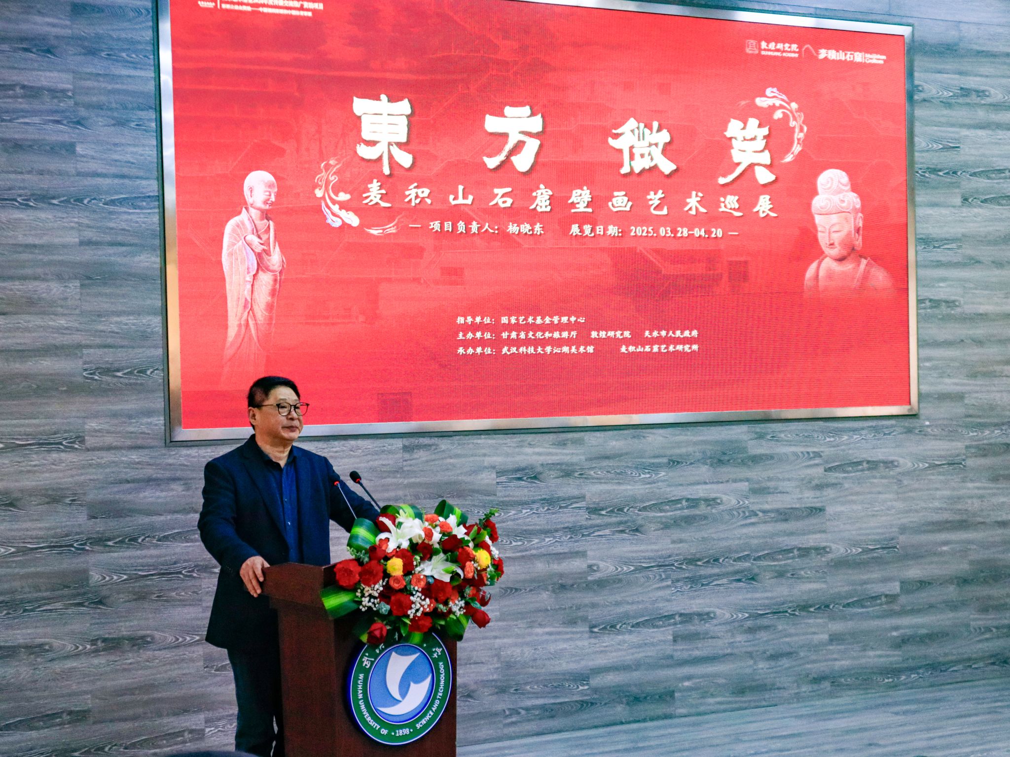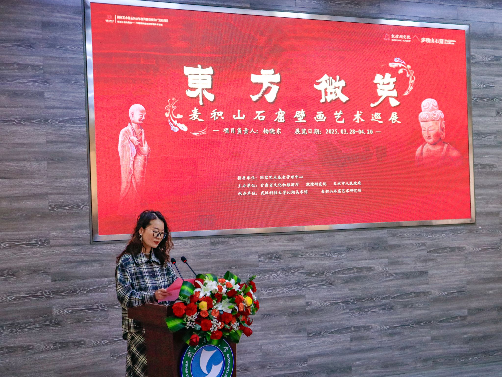 3月28日,国家艺术基金2024年度传播交流推广资助项目 东方微笑——麦积山石窟壁画艺术巡回展在我校沁湖美术馆开幕。这次展览承办单位有甘肃省文化和旅游厅、敦煌研究院和天水市人民政府、我校沁湖美术馆和麦积山石窟艺术研究所。
