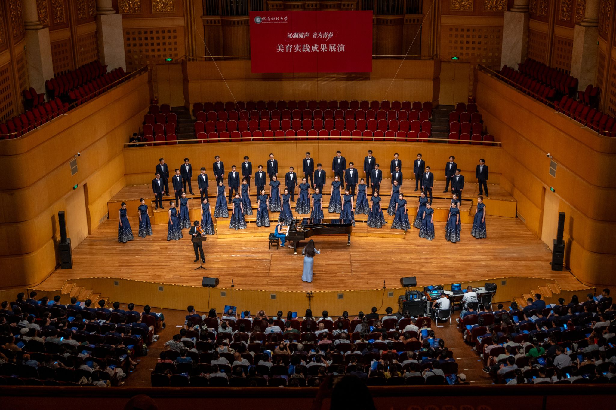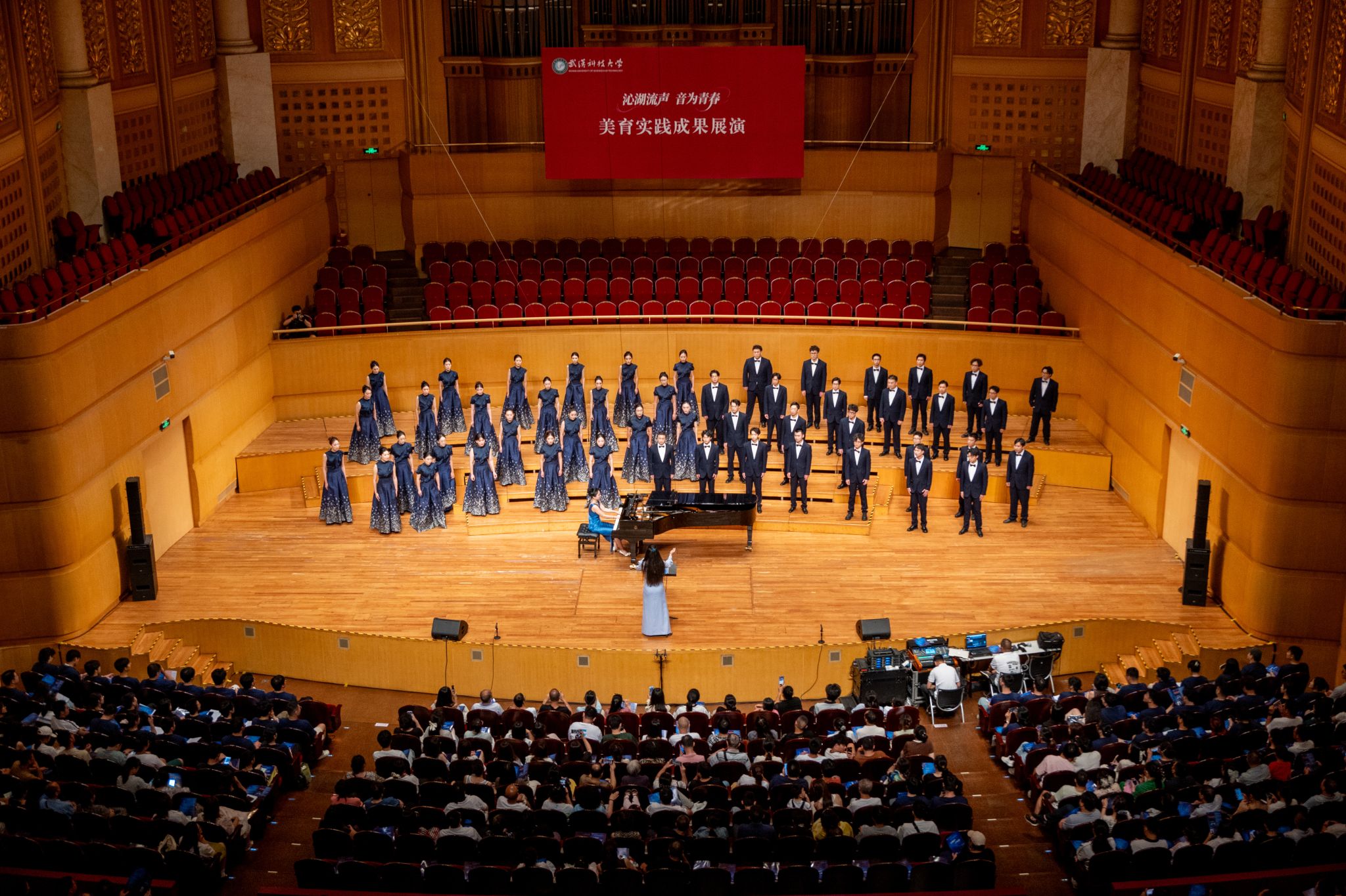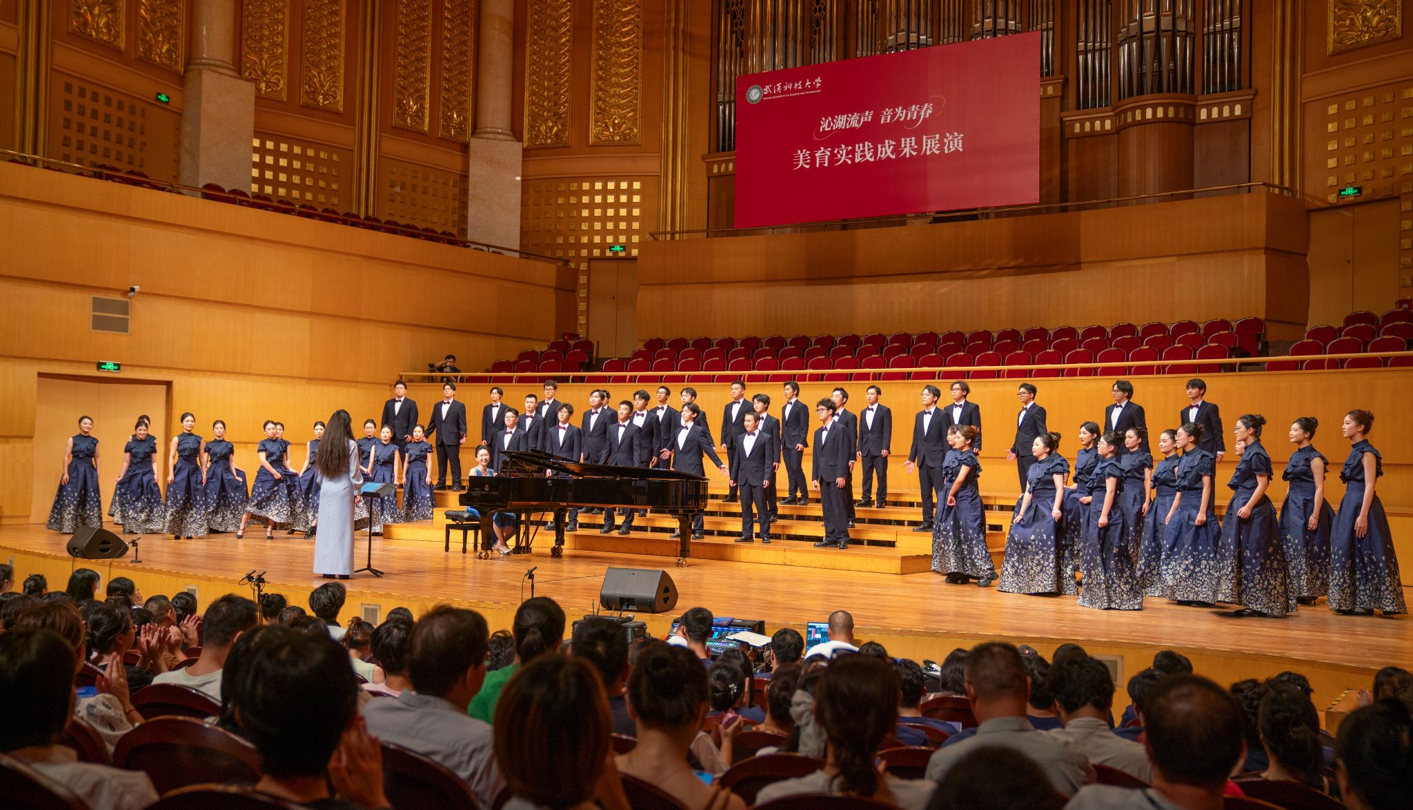 9月6日晚,我校“沁湖流声·音为青春”美育实践成果展演在武汉琴台音乐厅举行。校长倪红卫,党委副书记孙国胜,副校长吕勇、马腾,湖北省教育厅体育卫生与艺术教育处二级调研员姜贵君,湖北经济学院党委副书记汪达等出席活动,与数千余名师生、校友与音乐爱好者一同观看演出。