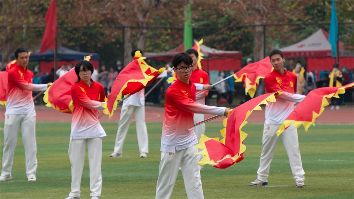 健美操表演中,学生们快速且变换着队形,“十字队”“同心圆”“波浪舞”呈现在观众面前。健美操表演带队教师张玲玲介绍,多种队形的变换则寓意大家勠力同心,将运动会举办得十全十美,胜利和鲜花终将属于每一位参与运动会的师生。