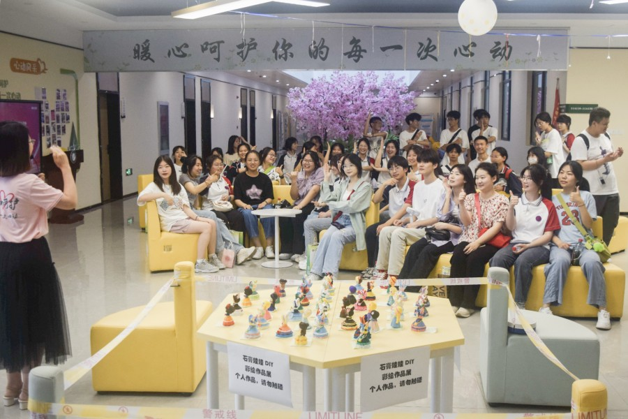 交流会结束后,罗田一中学生分为三组参观了学校美术馆、心理健康中心和校史馆。在美术馆中,面对一件件艺术佳作,学生们纷纷拍照留念;在心理健康活动中心,学生们体验了舒心减压室、漫心太空室等心理健康活动教室;在校史馆,学校讲解员为在场师生介绍了学校创办的历史,师生们认真聆听。