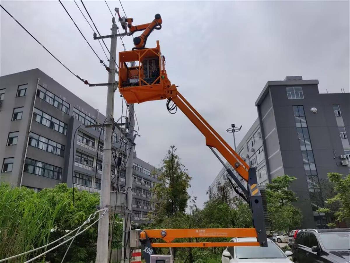 “自动作业模式启动时,机器人会利用安装在机械臂末端的3D相机,识别挂摘目标,标定机械臂夹爪与挂摘点的相对位置,计算挂摘点姿态,自动规划机械臂移动轨迹,完成接地线挂摘。”鄢龙武介绍,整个过程无需人为干涉,耗时3分钟左右,与一名熟练电力工人速度相仿。