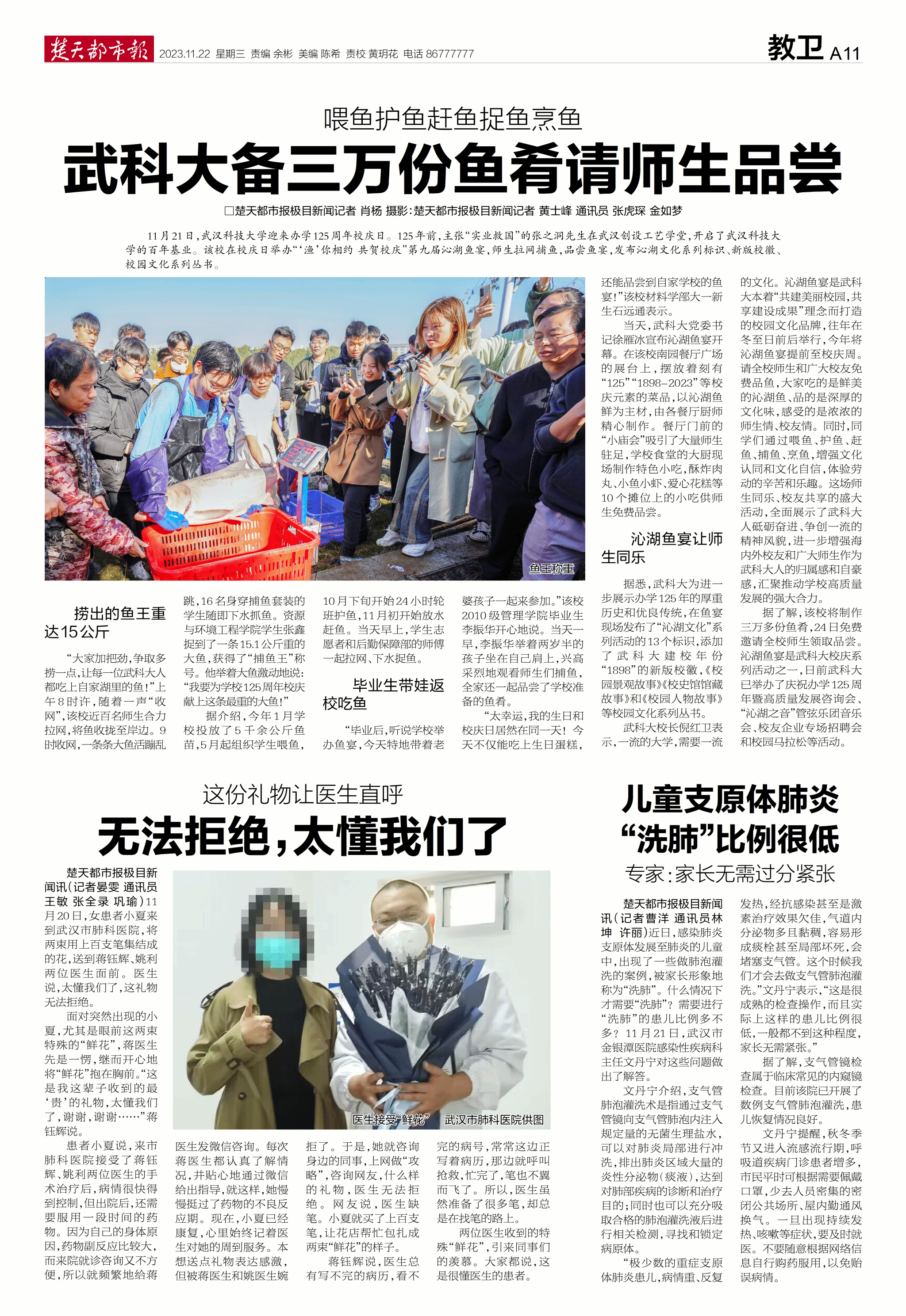 楚天都市报:喂鱼护鱼赶鱼捕鱼烹鱼,武科大125周年校庆“渔”生同乐