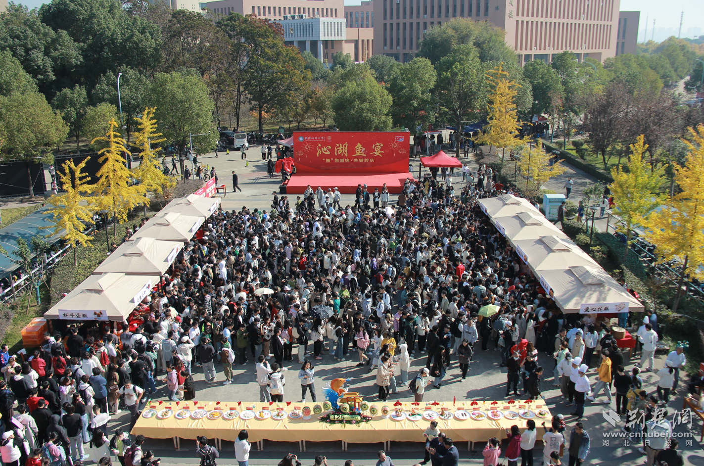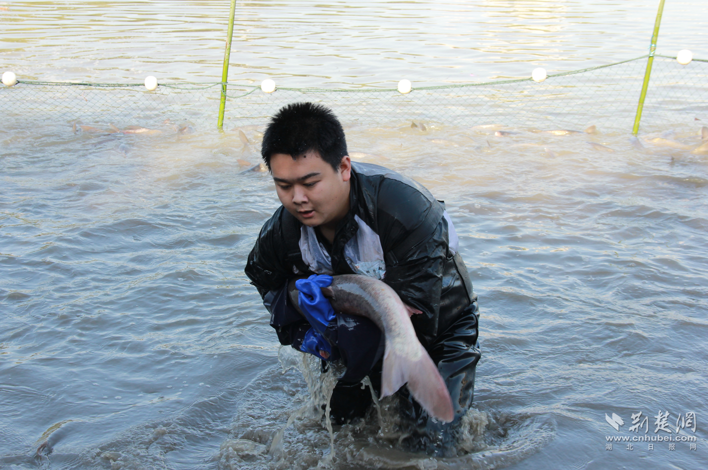 荆楚网:人可以摔,鱼不能丢!武科大学子捕鱼为母校125周年庆生
