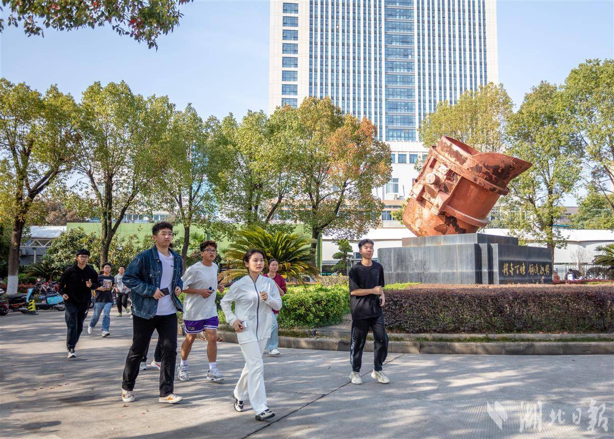 每天晚自习后,该校工商管理类2311班32名学生排成一条纵队,在体育委员吴俊组织下沿着校园里的沁湖绿道夜跑,全班一起跑,既强身健体,又增强班级凝聚力。该班学生李欣欣说:“大家互相鼓劲,我就能坚持跑完全程。”