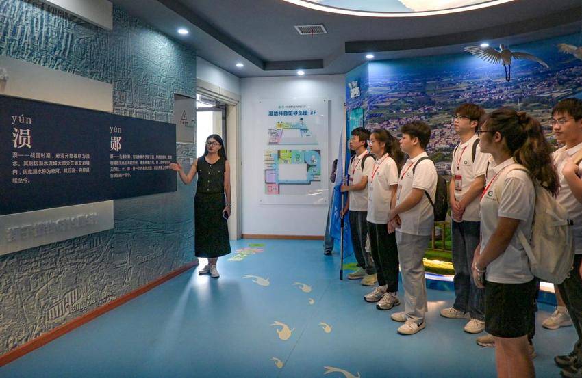 团队到科普馆参观了今年六月刚投入使用的安陆府河智慧湿地平台。据介绍,这一平台集生态云圈、规划发展、生物多样性、生态环境、安全监控、智慧决策、数字运营七大功能于一体,平台涵盖生物种类数量、生态环境状况等各项相关指标,展现了科技与生态治理的深度融合。
