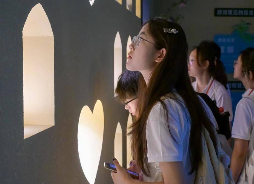 团队参观了湿地动植物标本、湿地生态修复展览墙以及科研水质监测技术展览墙,其中水质监测中的化验分析激起团队中环境工程专业的吴喆迅的兴趣,她感叹,看到自己所学的专业技术实实在在地被用在湿地环境保护,感到非常自豪。
