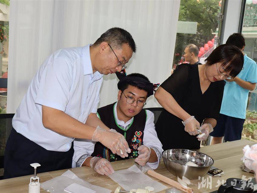 该校化工学院新生陆江磊是贵州侗族人,迎新日当天,他身着精美的侗族服饰,和父母第一次尝试亲手制作月饼。“我们一家人很重视团圆,每年都会聚在一起过中秋。本以为今年无法实现,却没想到能在学校一起体验浓浓的节日氛围。”他说。