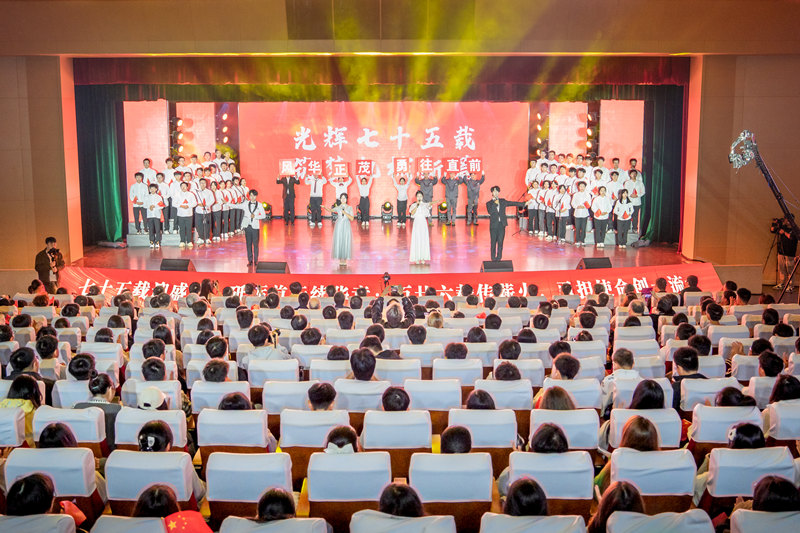 计算机科学与技术学院学生带来《溯梦》,穿插青年觉醒、武昌起义旗帜制作、钢铁技术革新、朗朗校园等场景;在法学与经济学院的节目中,二胡、古筝、鼓点、唢呐交叠伴奏;生命科学与健康学院学生们激昂朗诵,用青春活力操搭配歌曲《我和我的祖国》,祝福新中国75周年华诞。