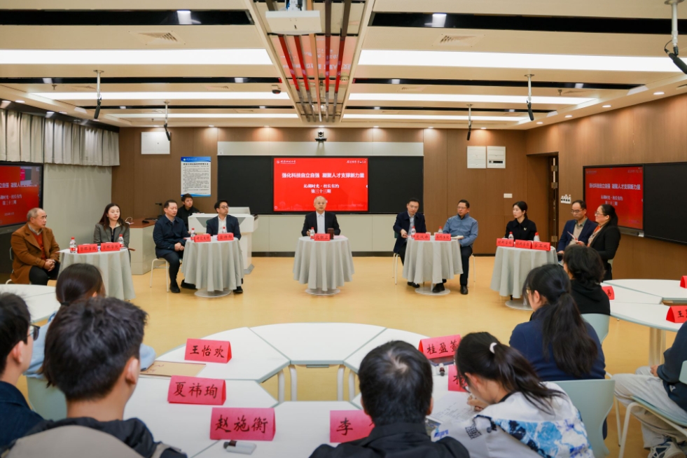 7位同学从专业优势、学习方法、实战能力提升、学科融合、学业与兴趣平衡、职业规划等方面提问。与会教师、研究生代表等分别从扎实基础、跨学科学习、利用资源、时间管理等角度给出建议,并介绍了学校的科研、实践及就业指导等资源情况。