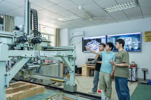 依托该平台,武科大打造了“数字孪生 + 现场实训” 沉浸式教学场景。学生先在虚拟环境中构建焦炉模型、练习拼砌异形耐火砖,再到实验室实操机械臂,最后通过远程智能系统完成砌筑仿真,并利用 AI 优化操作工艺,形成 “虚拟仿真— 实操验证—智能优化” 的闭环训练链,助力学生真正掌握机器人运动控制核心技术。